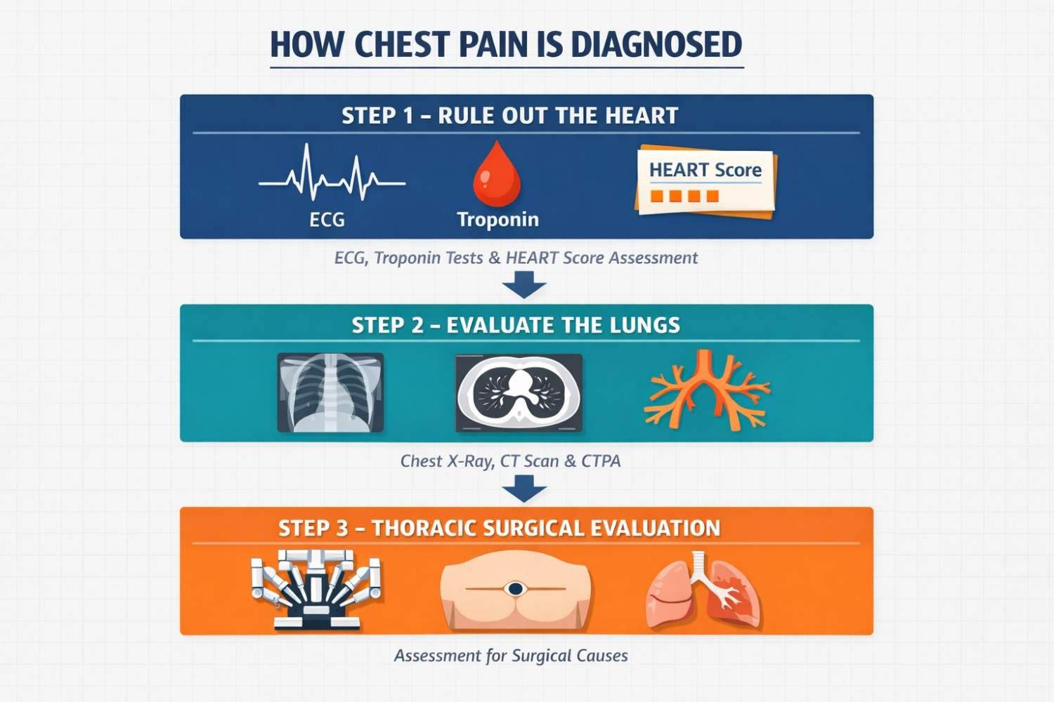 • If a lung or chest cause is confirmed, minimally invasive thoracic surgery offers effective, modern treatment with faster recovery