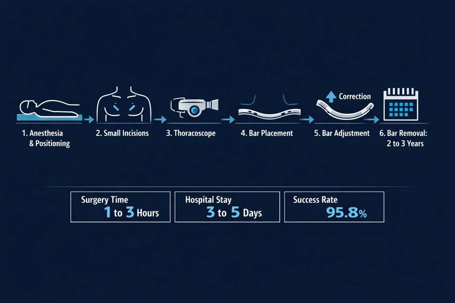 • A second short procedure (about 90 minutes) removes the bar once the chest has set in its corrected position