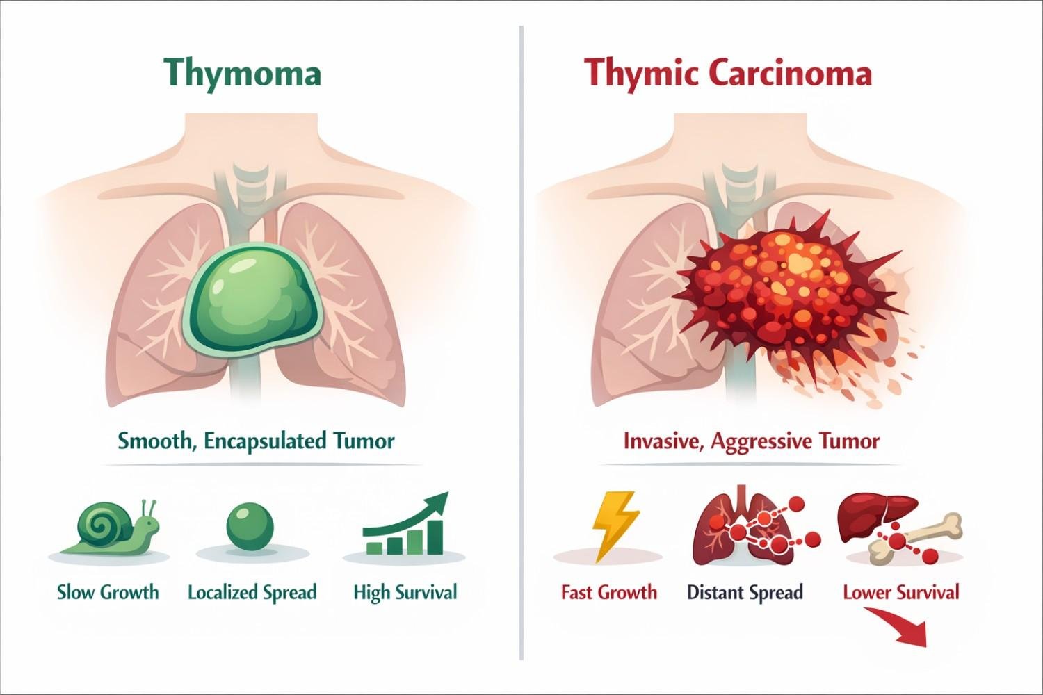 | Feature | Thymoma | Thymic Carcinoma |