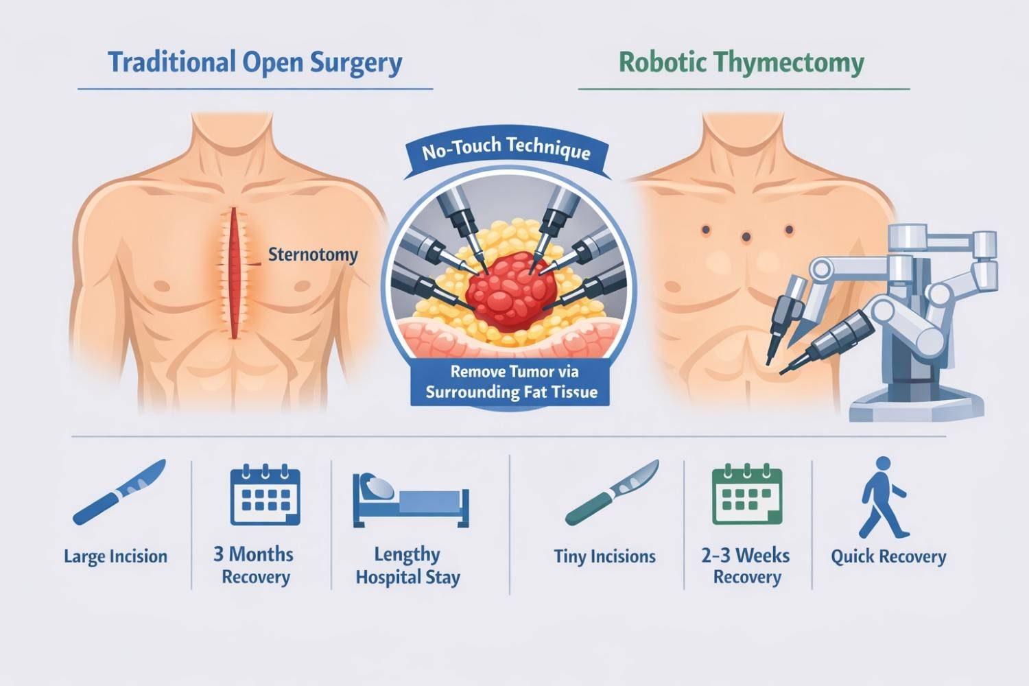 For patients seeking advanced mediastinal tumor treatment in Gurgaon, robotic thymectomy at a high-volume center offers the best combination of safety and results. Research published in PMC (2023) confirms that VATS and robotic approaches provide equivalent or better oncological outcomes compared to open surgery.